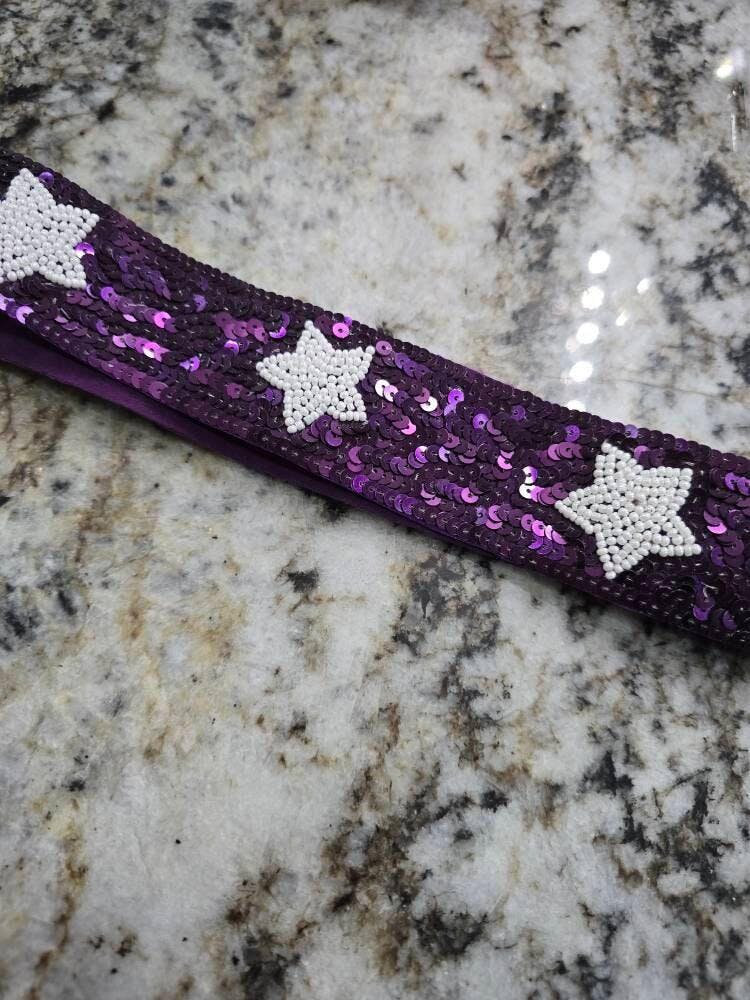 Deep red sequin strap set with bold black star accents. Rocker-glam energy that makes any crossbody pop. A striking statement strap for game day or concerts.