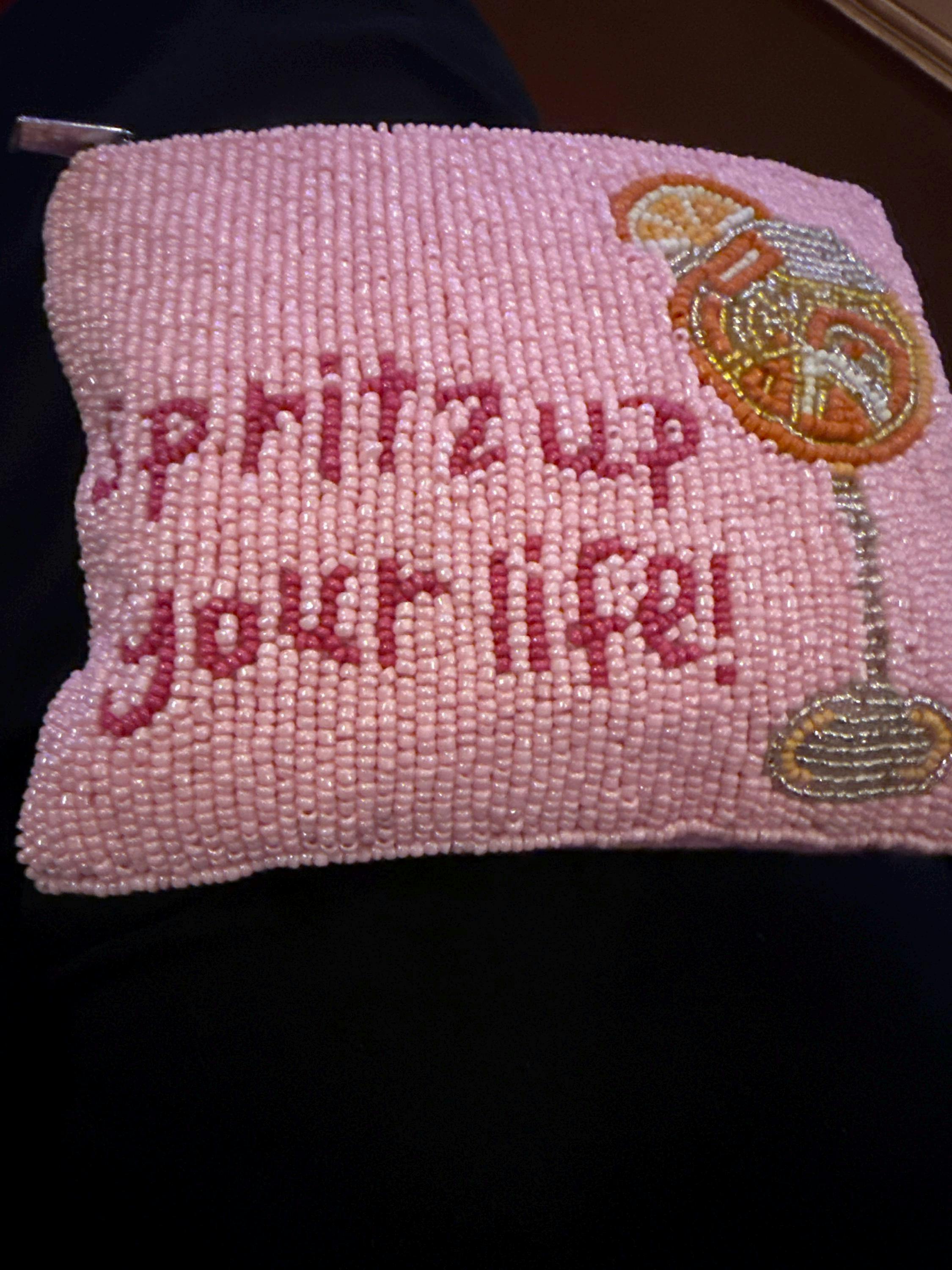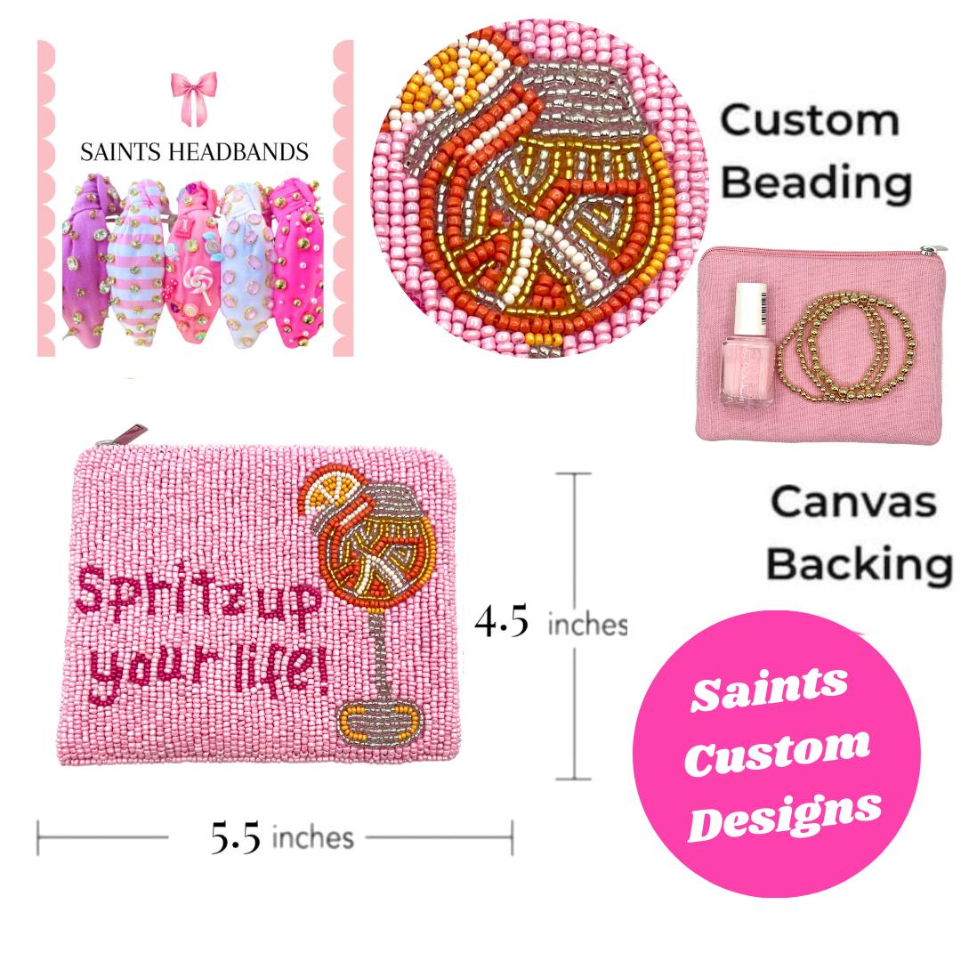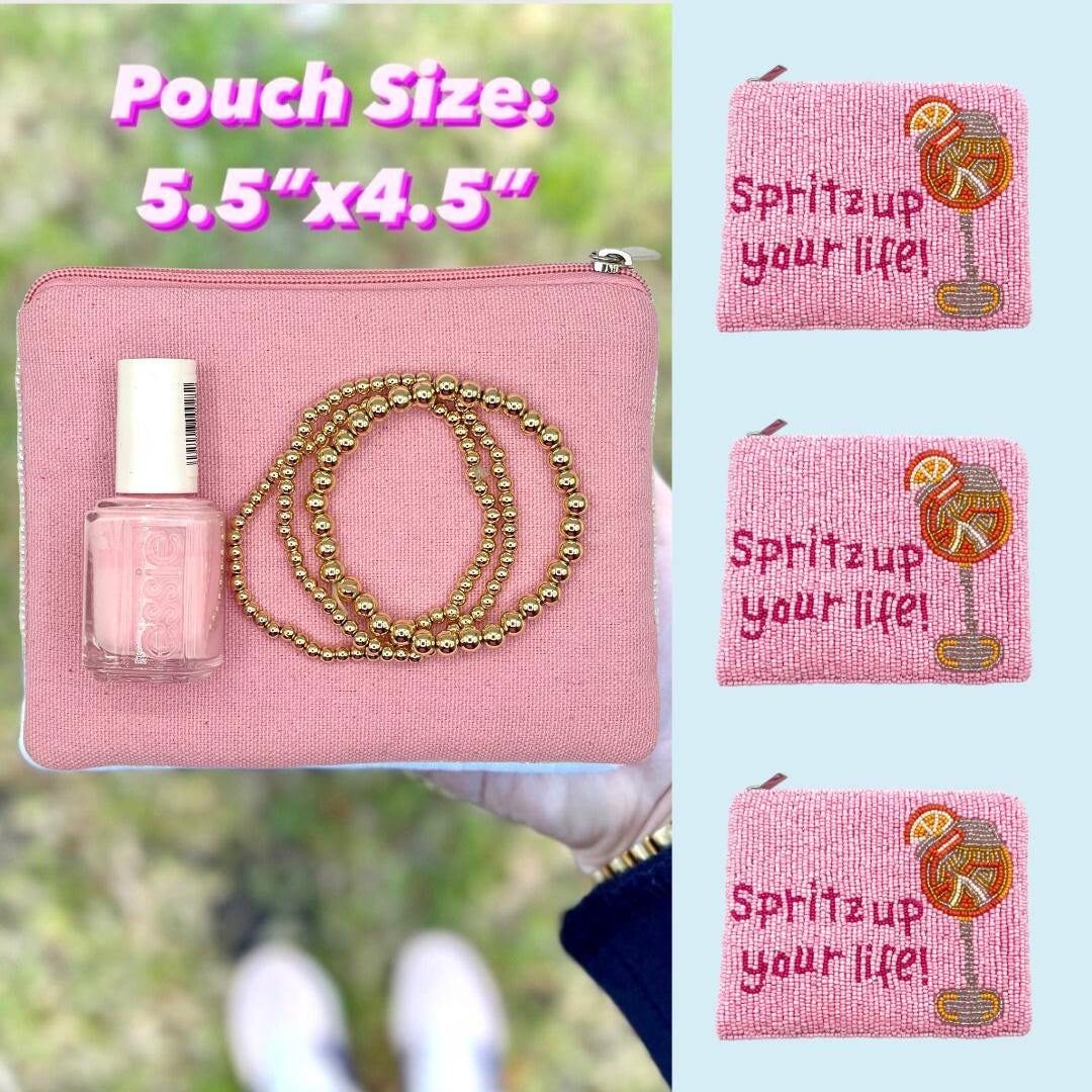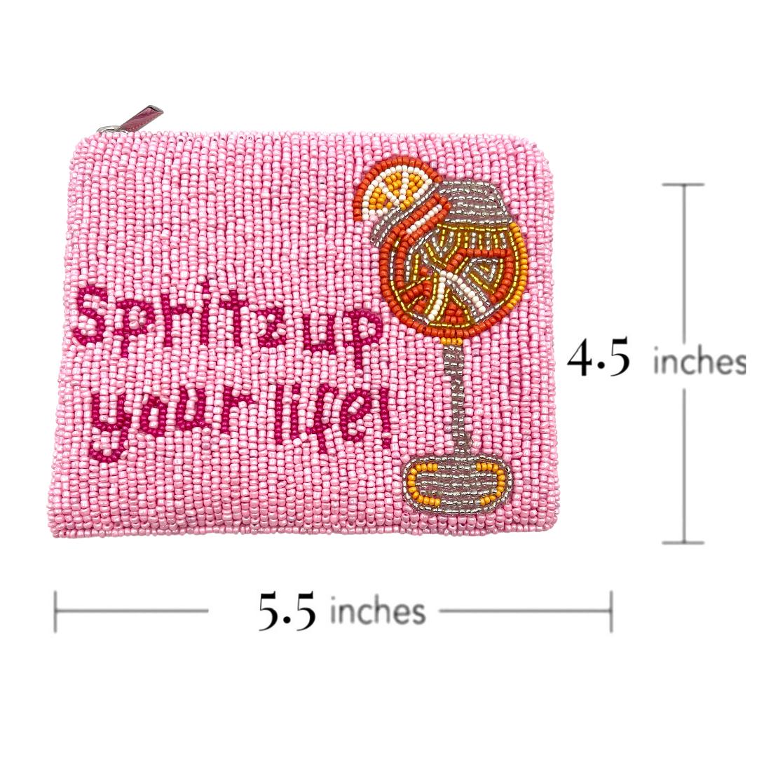 Carry your essentials in style with this fun, hand-beaded coin purse pouch featuring a bright Aperol Sprits design. The small size is perfect for keys, cash, or makeup, and includes a durable canvas backing and secure zipper closure.