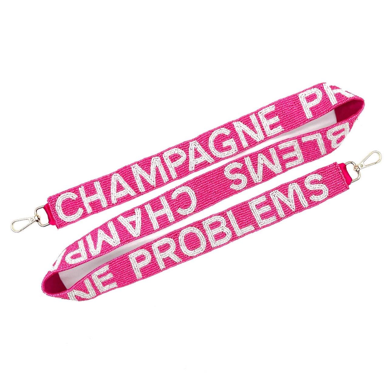 • Hand-beaded design with “Champagne Problems” text in white beads