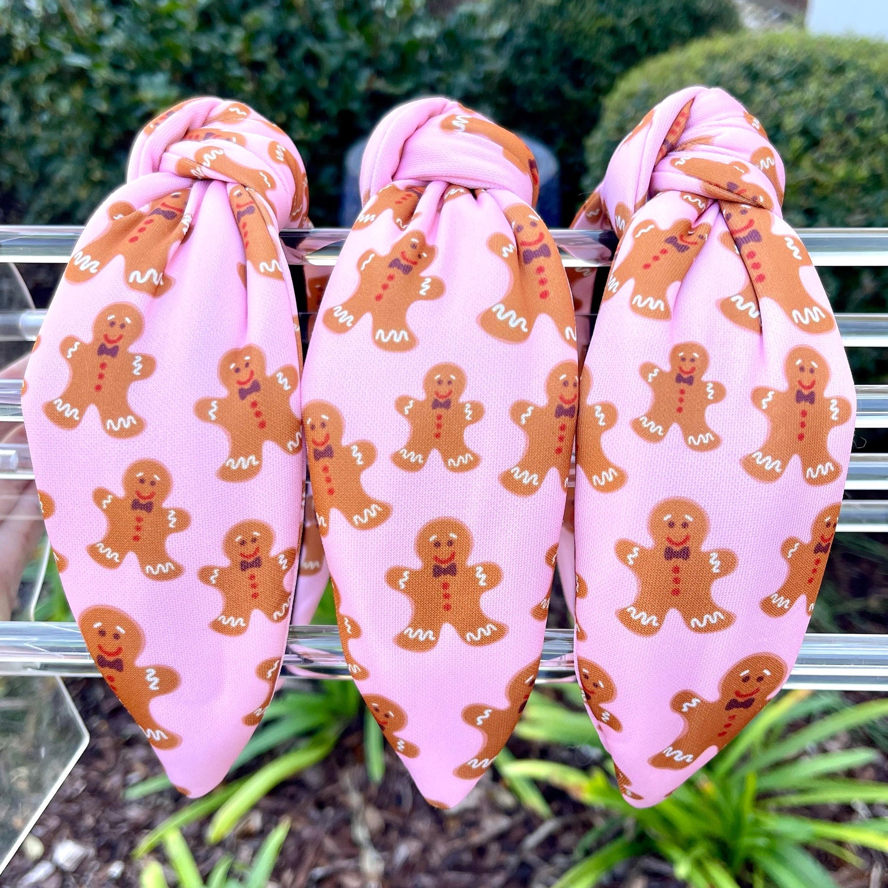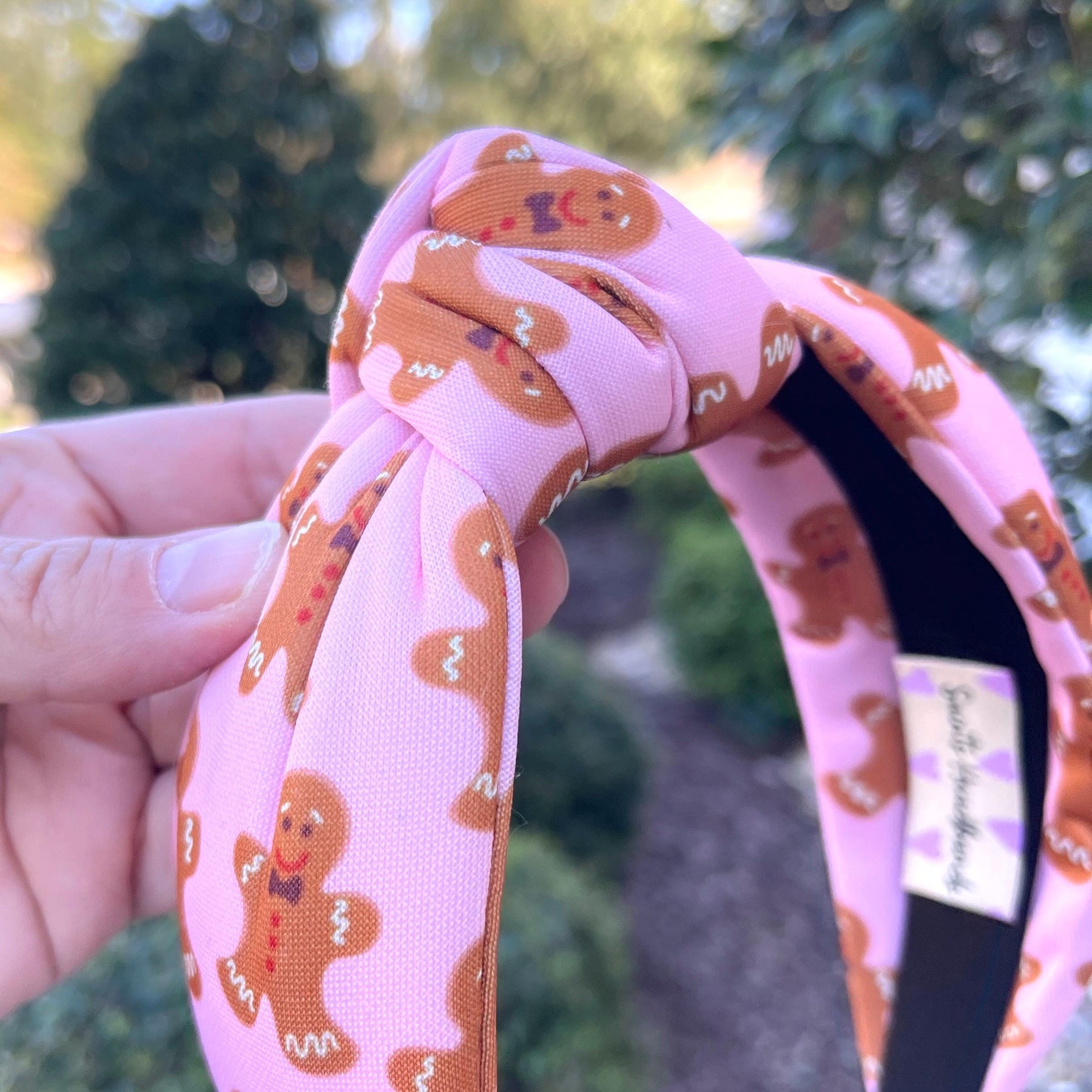 Get into the holiday spirit with this adorable Gingerbread Print Top-Knot Headband. This custom-designed, padded headband is the ultimate festive accessory, featuring a playful gingerbread pattern on soft pink fabric. Perfect for Christmas parties, holiday gatherings, or simply adding a cozy, charming touch to your seasonal style. This unique Christmas headband for women and girls completes any holiday look with spirited flair.