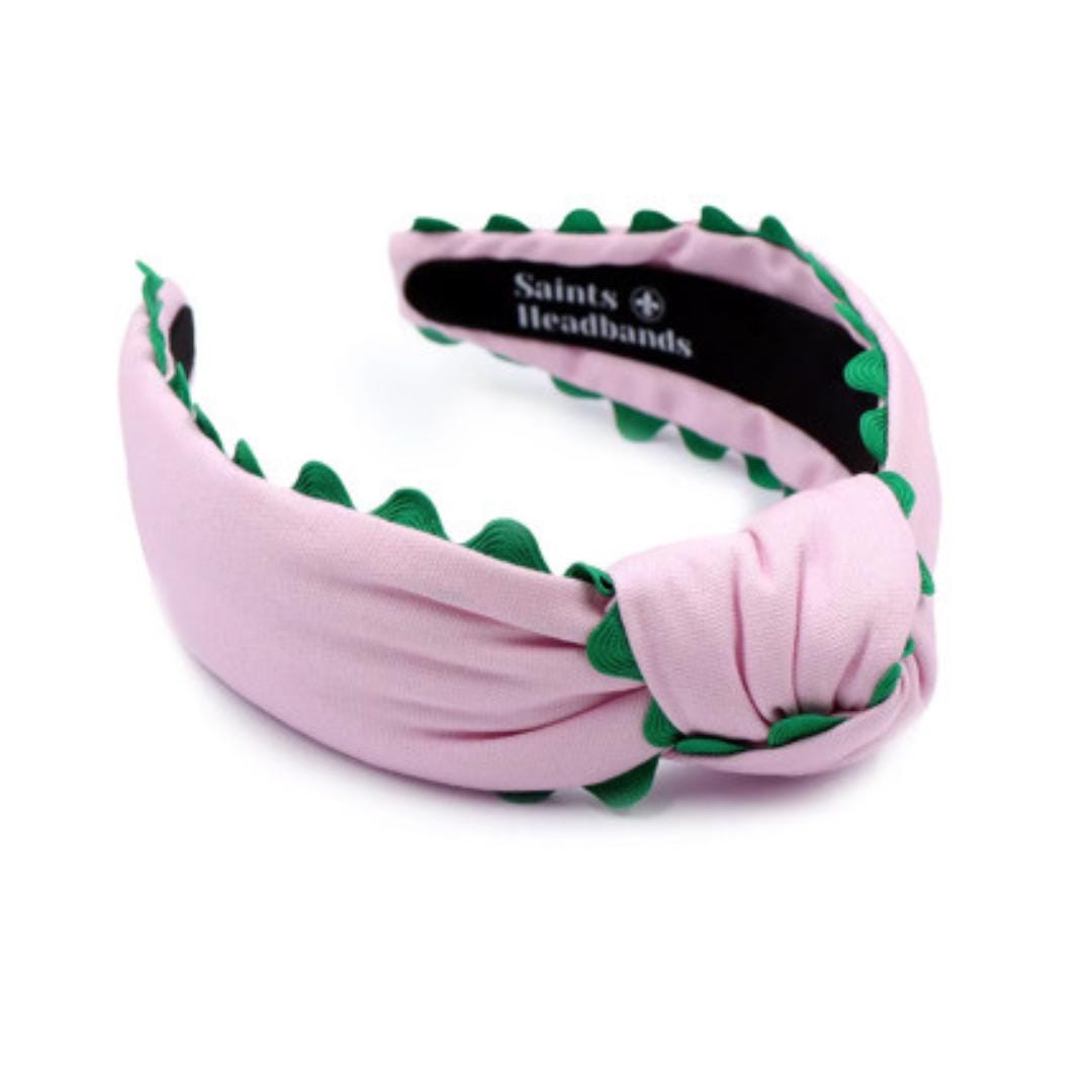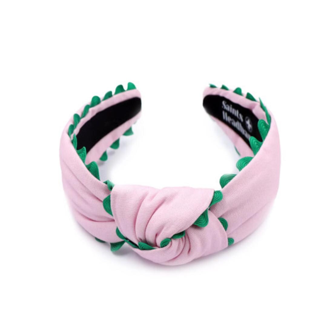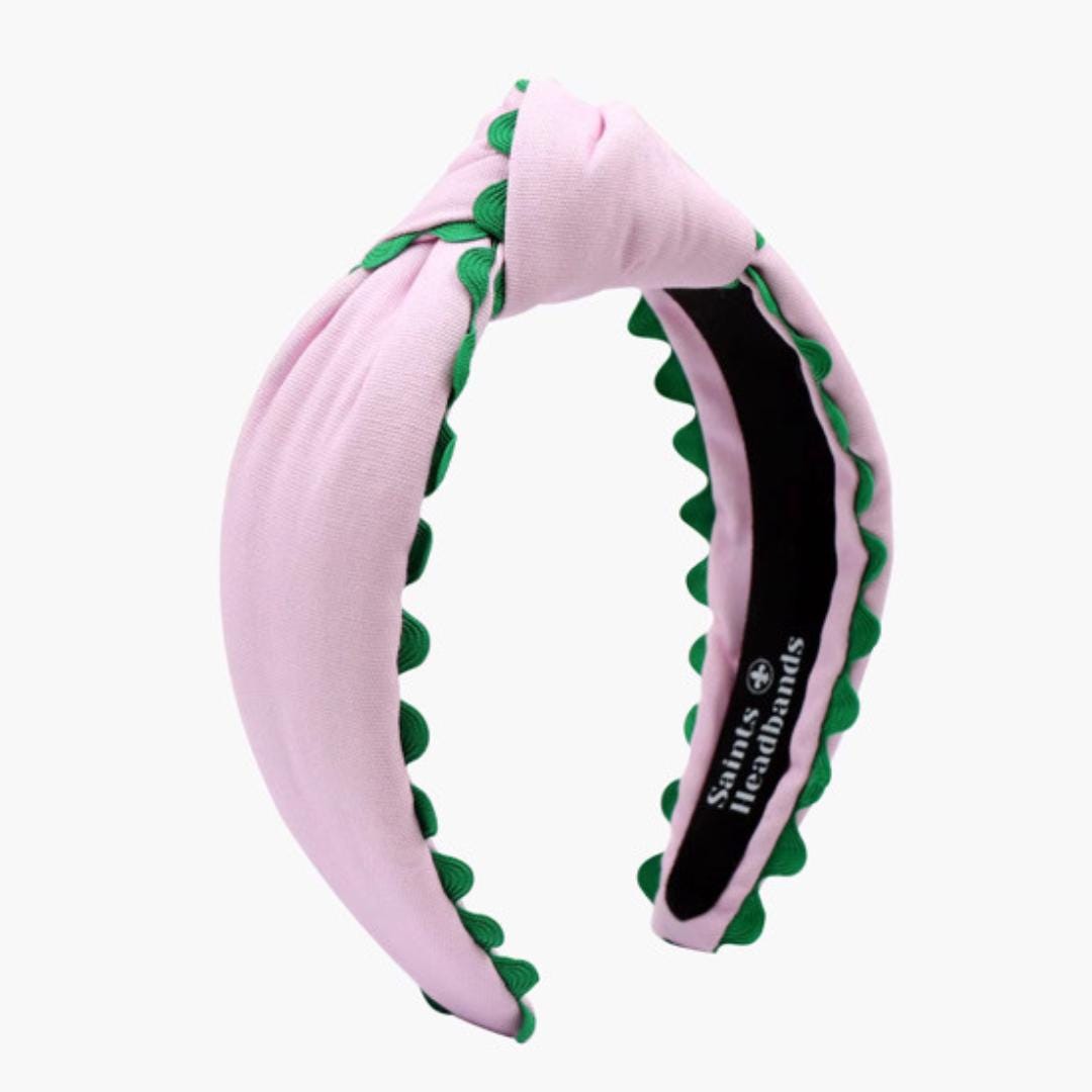 Add a playful pop of color to your look with the Pink & Green Scalloped Top Knot Headband. Designed with soft padded fabric and bold scalloped trim, this stylish accessory brings a sweet statement touch to any outfit. Perfect for gameday, brunch, or a cute coffee run, it delivers instant charm with all-day comfort.