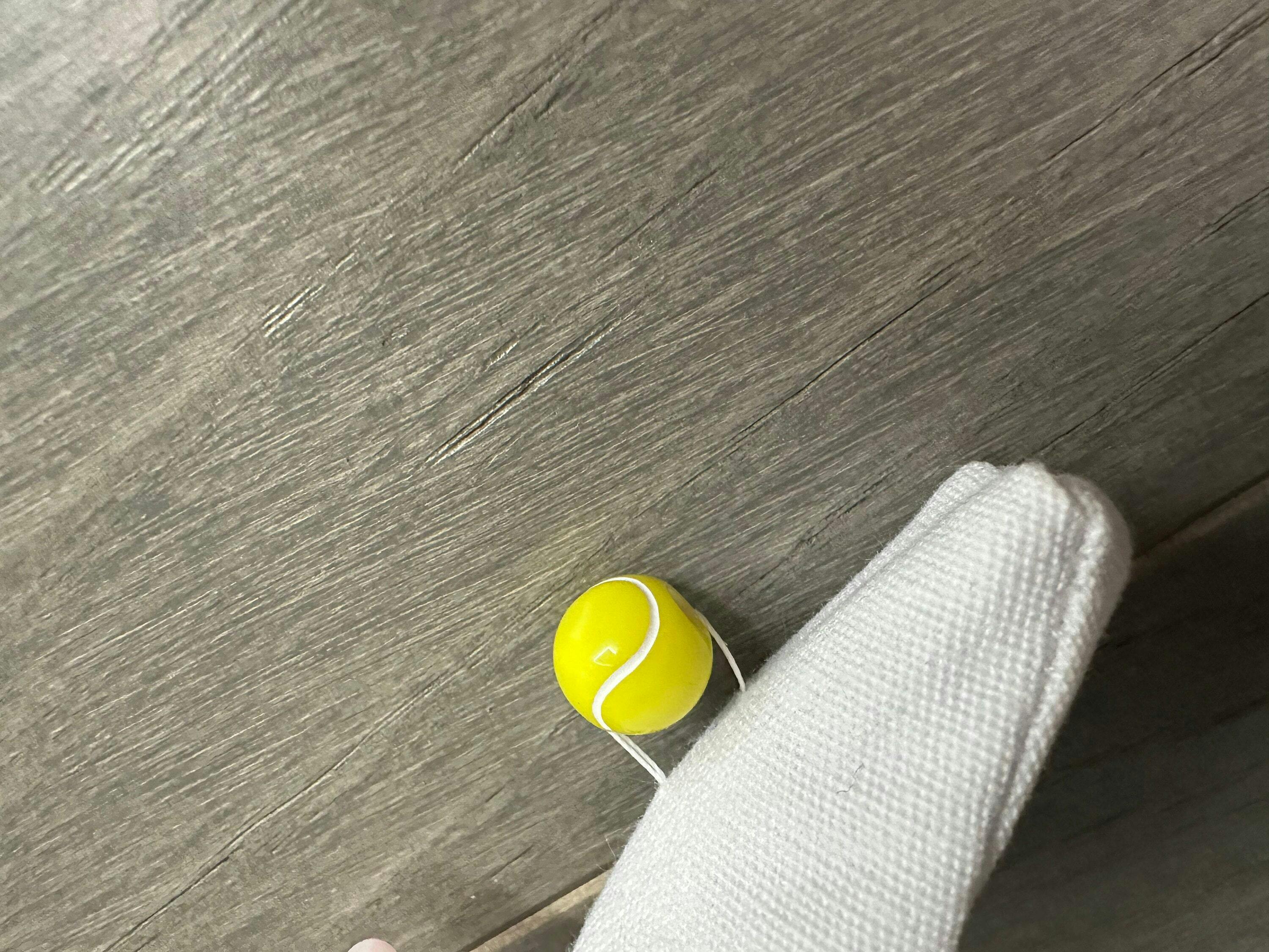 - Embellished with yellow tennis ball charms, gold rackets, and rhinestones