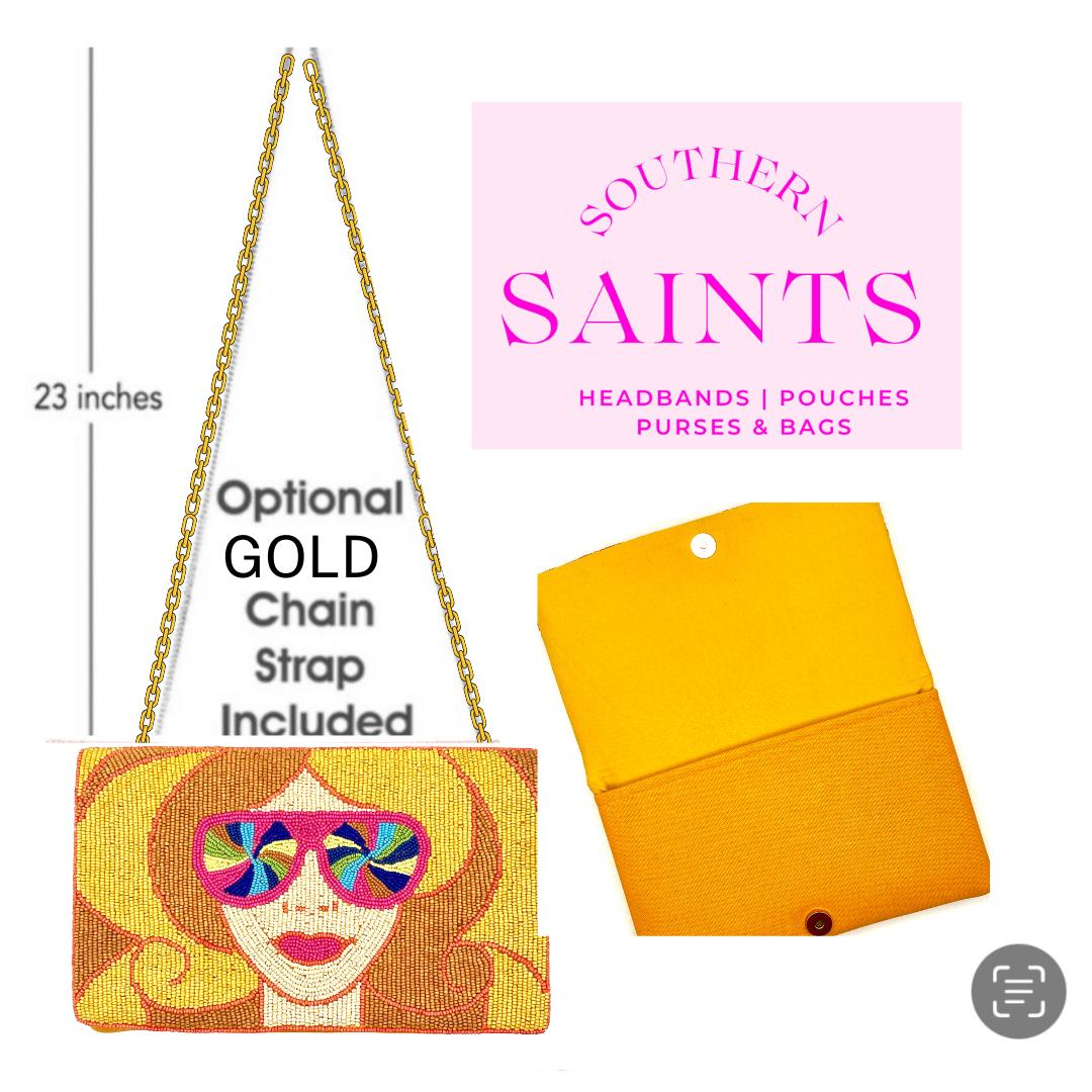 Add a bold pop of color to your outfit with this Preppy Girl Yellow Clutch, a stunning hand-beaded statement bag designed for trend-lovers and accessory collectors. Featuring a bright retro-inspired girl with colorful sunglasses, this clutch brings playful personality to every look. Perfect for vacations, brunch, concerts, or girls’ night out.